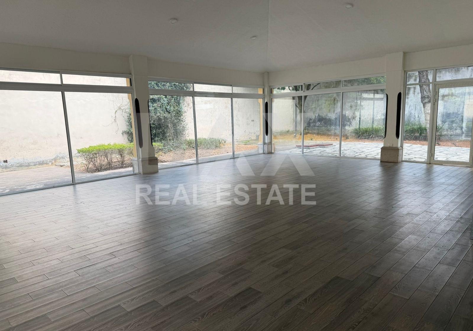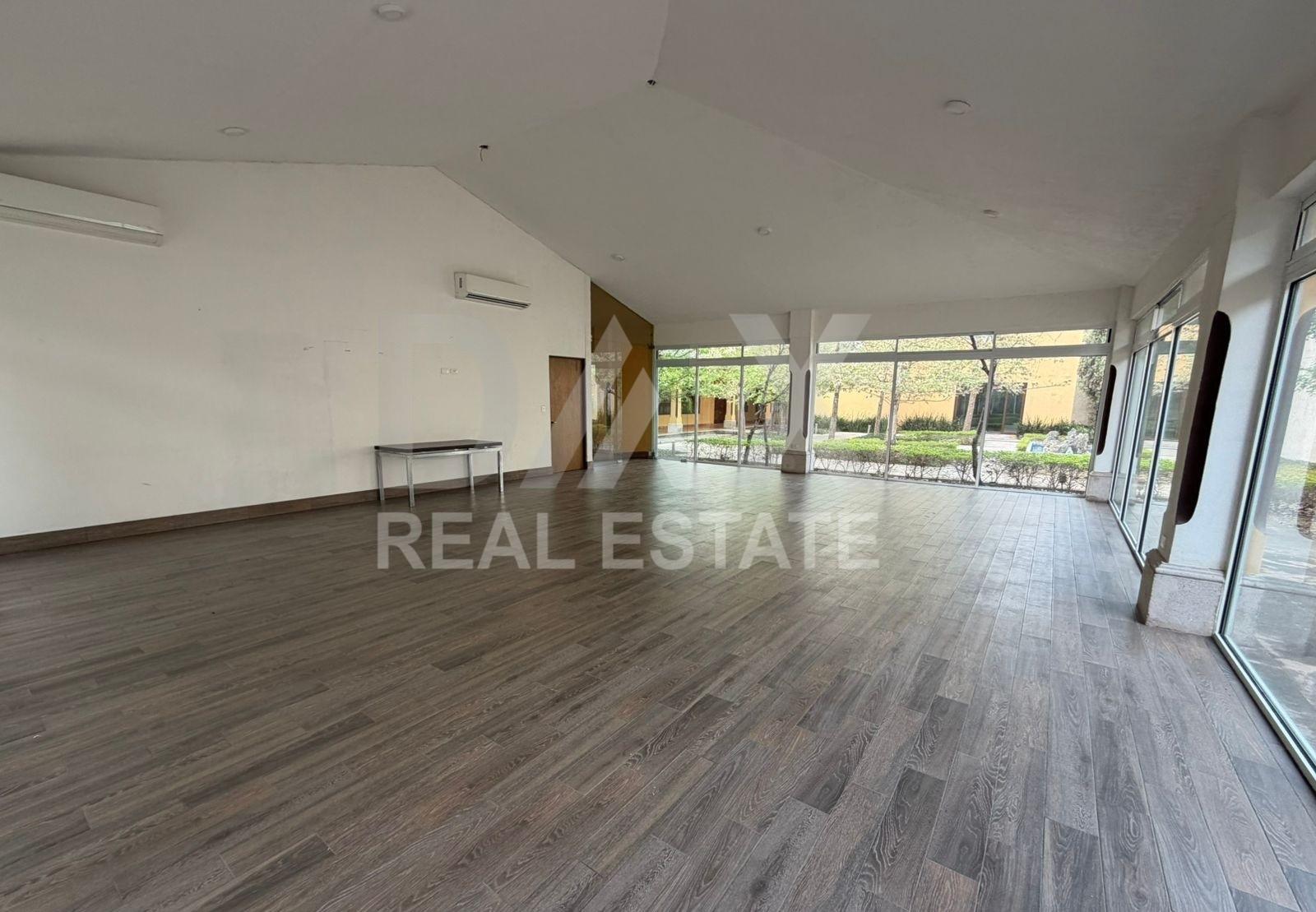 Salón de eventos con medio baño, clóset, puertas de vidrio y 2 minisplits